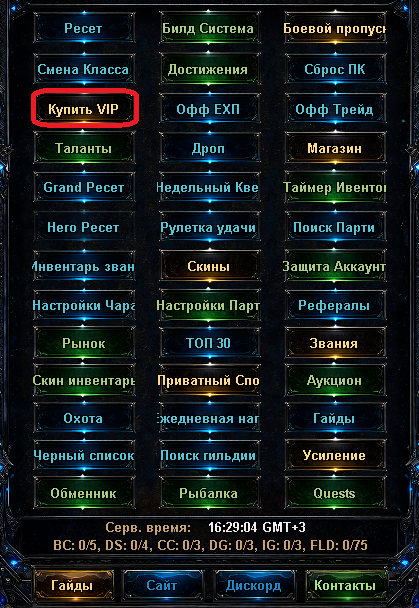 | Откроется меню покупки VIP статуса с детальным описанием его бонусов | ||
