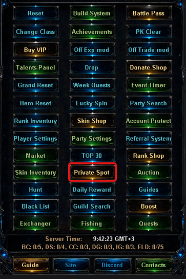 A private spot is a separate mini-location where leveling goes much faster, and only the spot owner has access.