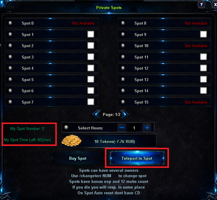 | Then click the «Private Spot» button. | ||